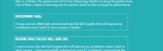 Turn 1-2 initiatives (the most exciting ones) from your SWOT into a personal Development Goal. Articulate your goal in a 'headline' so it's no more than one sentence.